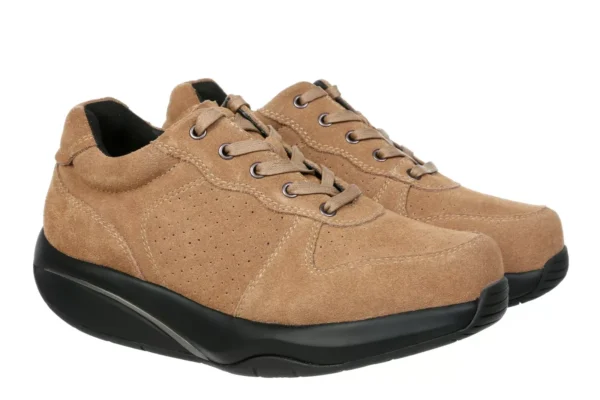Das Obermaterial – ein Mix aus Mesh und Kunstleder, das Mesh-Fußbett sowie die bewährte MBT-Sohlen-Konstruktion (mittleres Aktivierungslevel) gewähren hohen Tragekomfort. Die MBT-Sohlentechnologie erlaubt ein optimiertes Gehen und Stehen, ein Schnellverschluss-System ermöglicht ein rasches und bequemes An- und Ausziehen.