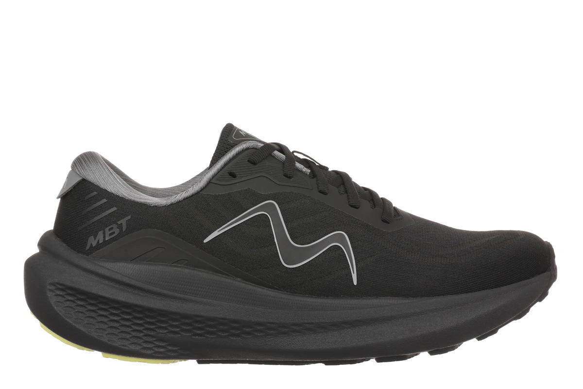 Die leichte MBT-Sohle gewährt hervorragende Stoßdämpfung für gelenkschonendes Laufen sowie eine hohe Stabilität und verbesserte Traktion bei gleichzeitig geringem Gewicht. Eine gleichmäßige Druckverteilung reduziert lokale Belastungspunkte, wobei die Zwischensohle mit Flexionszonen eine natürliche und flüssige Abrollbewegung fördert.