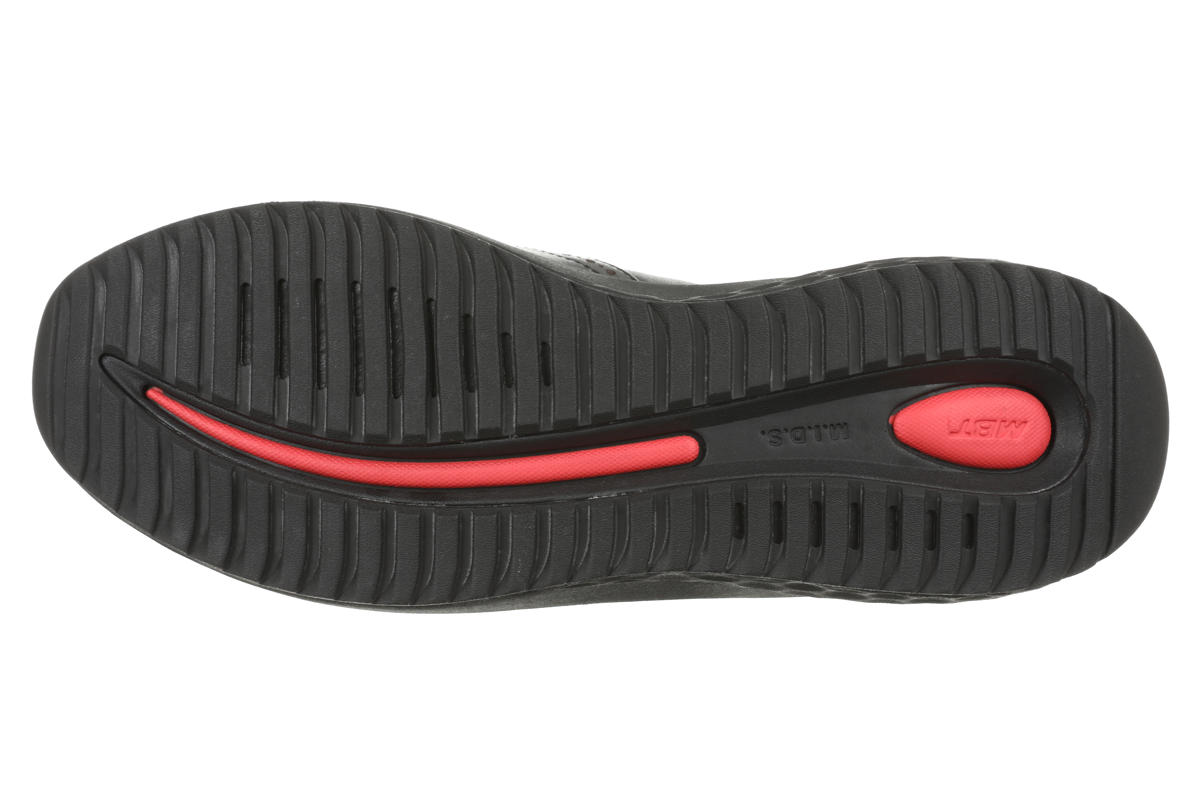 Die leichte, schmale Laufsohle mit integrierter M.I.D.S.-Technologie sorgt für optimale Dämpfung und unterstützt durch ihre Teilung ein natürliches Abrollverhalten (höchster Aktivierungslevel). Hochwertiges Leder garantiert ein angenehmes Fußklima und hervorragenden Tragekomfort.